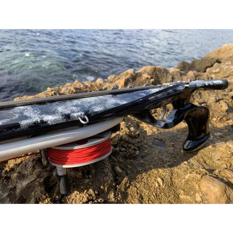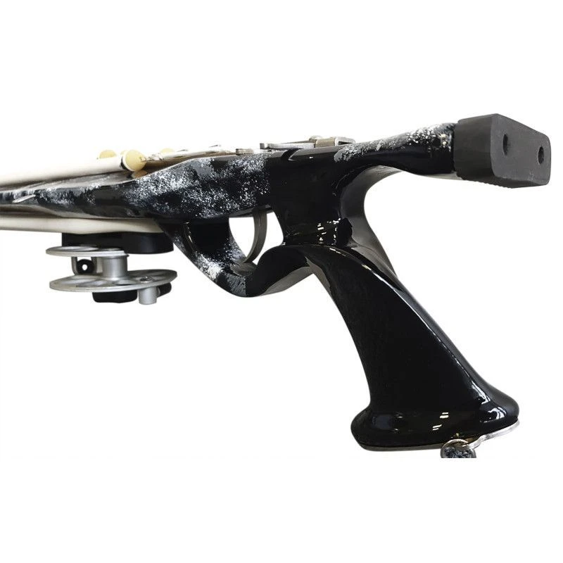 – 2 compartiments dans lequels se trouve un lestage de plomb pour ajuster l’assiette de l’arbalète. Livré avec une assiette neutre.