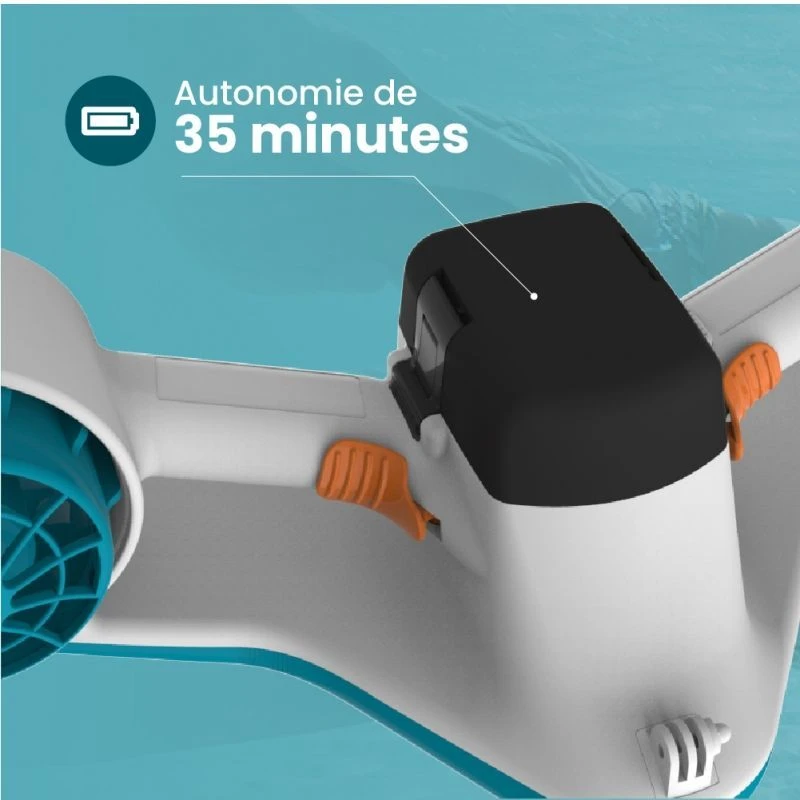 Grâce à sa batterie d’une autonomie de 35min, vous pourrez explorer les profondeurs à votre rythme. En effet, Seaside propose trois vitesses pour naviguer lentement ou à un rythme accentué pour les friands de vitesse et sensation ! Seaside ne s’arrête pas là : vous aurez la possibilité de capturer vos meilleurs moments grâce au support GoPro intégré afin de pouvoir revivre vos plus beaux souvenirs.
